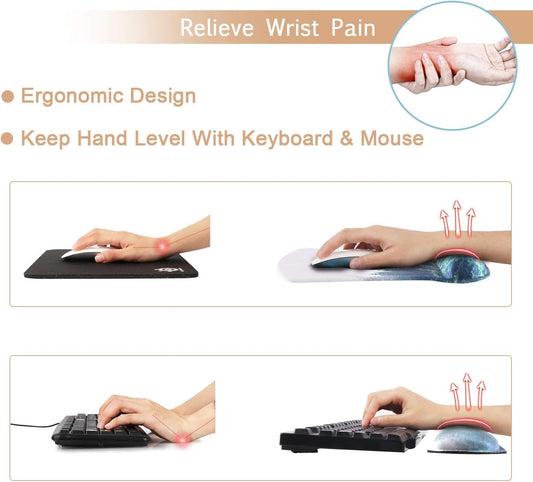 Keyboard Wrist Rest Pad and Mouse Wrist Rest Support Mouse Pad Set,Durable & Comfortable & Lightweight for Easy Typing & Pain Relief-Ergonomic Support (Galaxy)