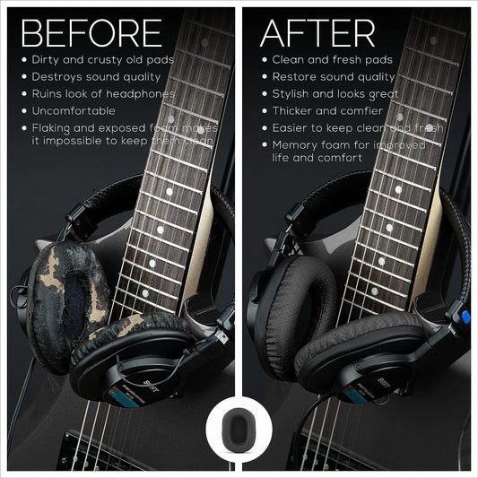 Perforated Replacement Earpads for Sony MDR 7506, V6 & CD900ST with Memory Foam Ear Pad & Suitable for Other on Ear Headphones (Black)